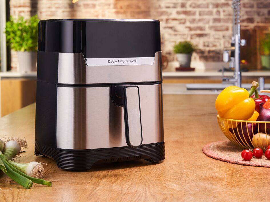 Descubra a solução 2 em 1, para fritos e grelhados saudáveis num só aparelho! Mais do que uma fritadeira sem óleo, a tecnologia exclusiva de ar quente proporciona também uma grelha em alumínio, para desfrutar de carne e vegetais sumarentos, grelhados na perfeição. A função tradicional de uma fritadeira sem óleo promete resultados crocantes e dourados com pouco ou nenhum óleo. Com 8 programas automáticos, um painel de controlo digital e um temporizador conveniente alcançar resultados perfeitos torna-se fácil. Até é possível desidratar alimentos para preparar snacks deliciosos e saudáveis no conforto da sua cozinha, como fruta ou vegetais desidratados. E ainda, capacidade XL para garantir que consegue cozinhar para toda a família e amigos. É a alternativa ideal ao forno clássico, para resultados rápidos e com menos consumo de energia!