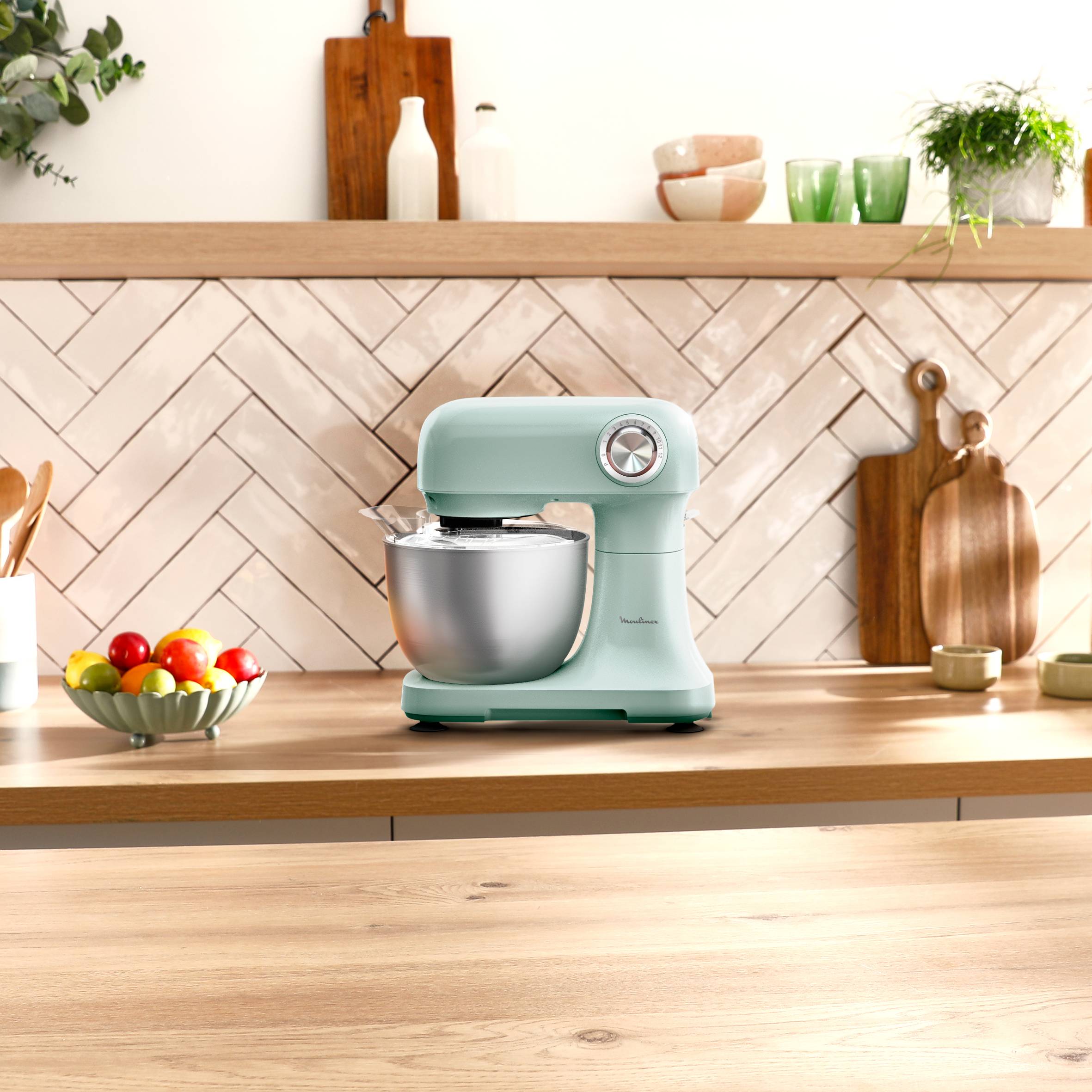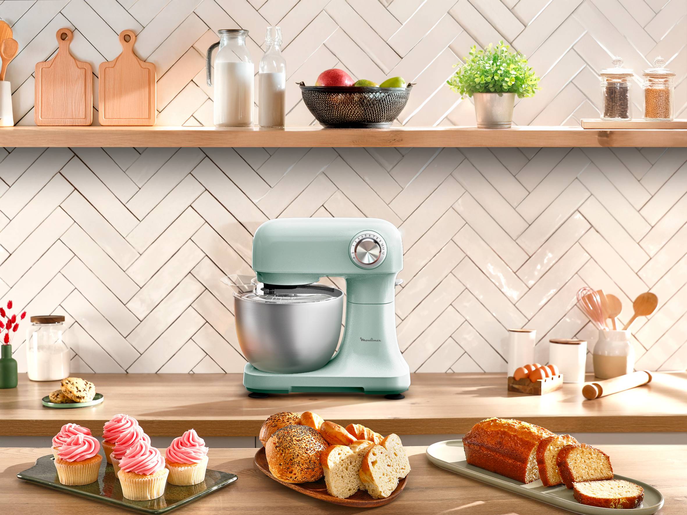 Batedeira compacta, que ocupa o mesmo espaço que o de uma folha A4 Fácil de usar, com um único botão com 12 velocidades e função pulse — para todas as suas necessidades de pastelaria e panificação 3 ferramentas essenciais — vara de arames, batedor e gancho para massa — para natas fofas, massas leves ou massas pesadas Fácil de arrumar, ideal para qualquer cozinha, da bancada ao armário Elevado desempenho graças ao movimento planetário, para resultados suaves e uniformes Função de paragem automática para parar a mistura assim que a cabeça for levantada, garantindo total segurança Taça de 3,5 L em aço inoxidável, para receitas em tamanho familiar — bata até 4 claras em castelo ou misture 800 g de massa para bolo Taça, vara de arames, batedor e gancho para massa compatíveis com a máquina de lavar loiça