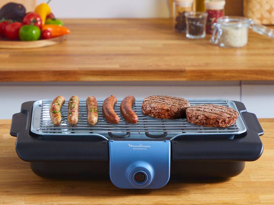 Concebido para responder aos desafios mais exigentes, o EasyGrill Accessimo combina na perfeição poder e simplicidade! Este grelhador tem uma grelha em aço de qualidade, uma potência elevada de 2100W, uma grande superfície de cozedura de 735cm², um tabuleiro de recolha de sucos com água para reduzir o fumo e os odores!