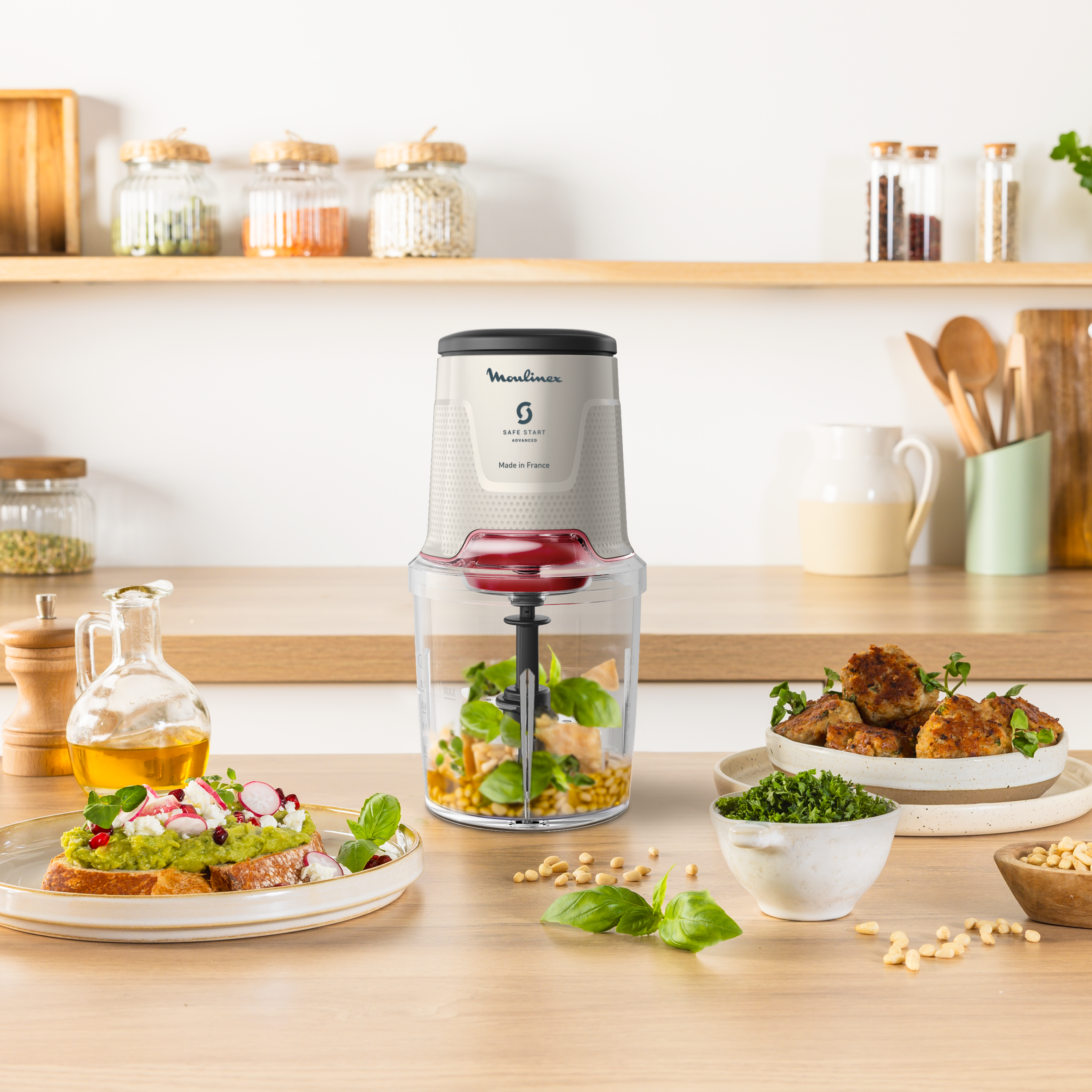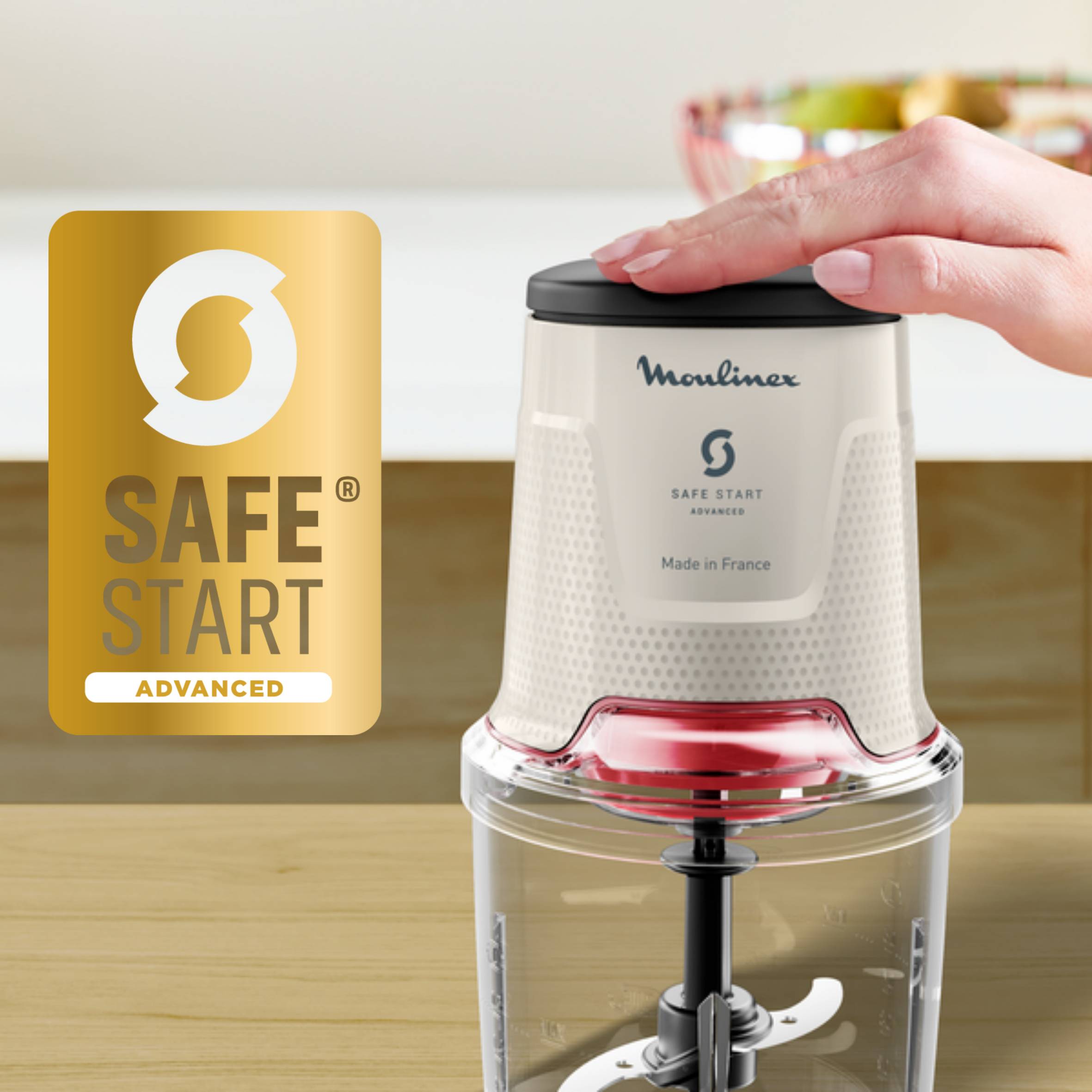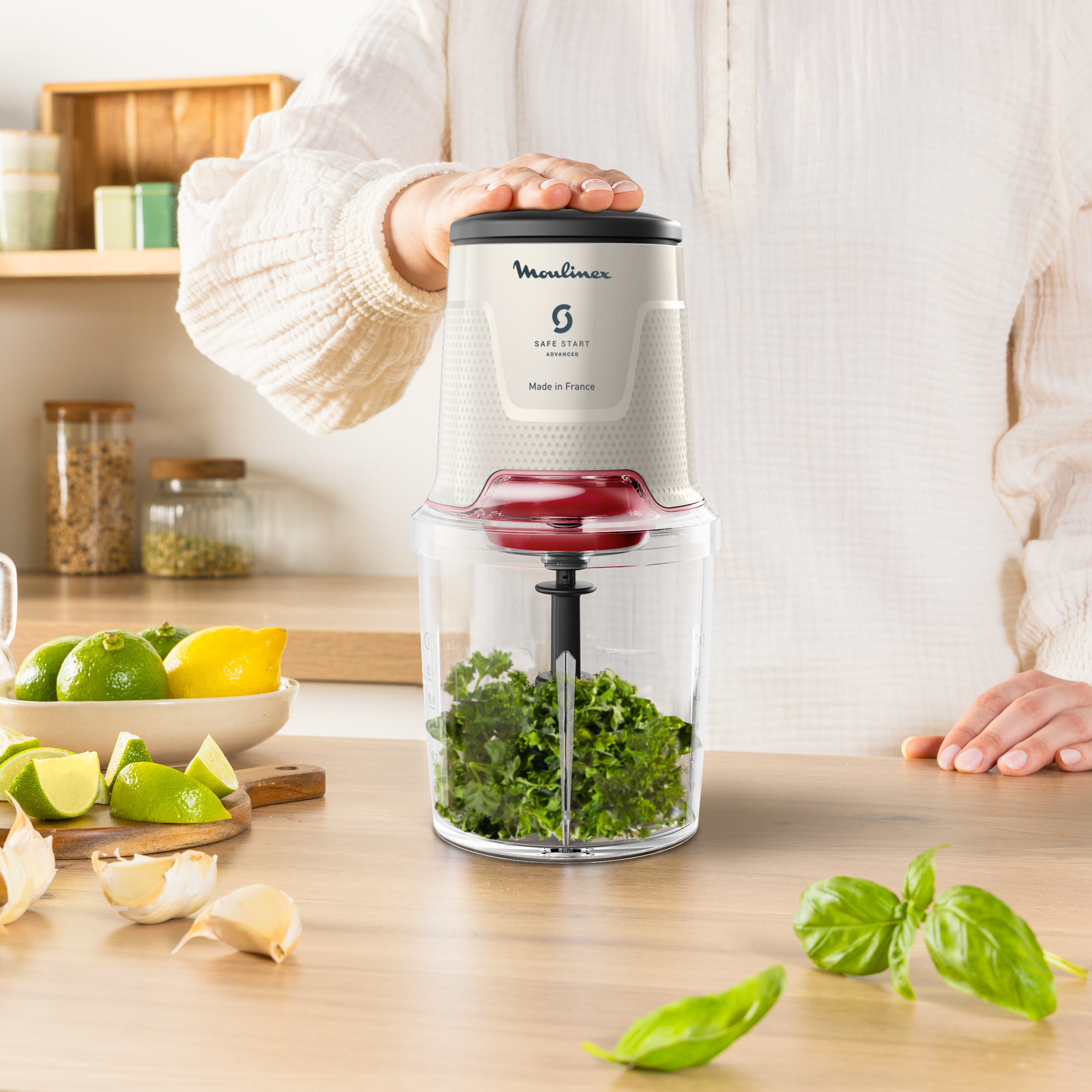 Um potente motor de 600 W e 4 lâminas cruzadas ultra afiadas em aço inoxidável, para resultados rápidos e fáceis com um único toque Picadora elétrica com tecnologia patenteada Safe Start Advanced, com dupla proteção e segurança perfeita 3 funções versáteis: misture guacamole e húmus, pique cebolas e ervas, pique carne e muito mais Copo transparente para poder acompanhar a consistência da trituração Compacta, leve, fácil de guardar e compatível com a máquina de lavar loiça (exceto o bloco do motor) — para máxima comodidade Capacidade generosa de 500 ml para todas as suas preparações diárias Fabricada na nossa fábrica em Lourdes, França, com normas de elevada qualidade e competência