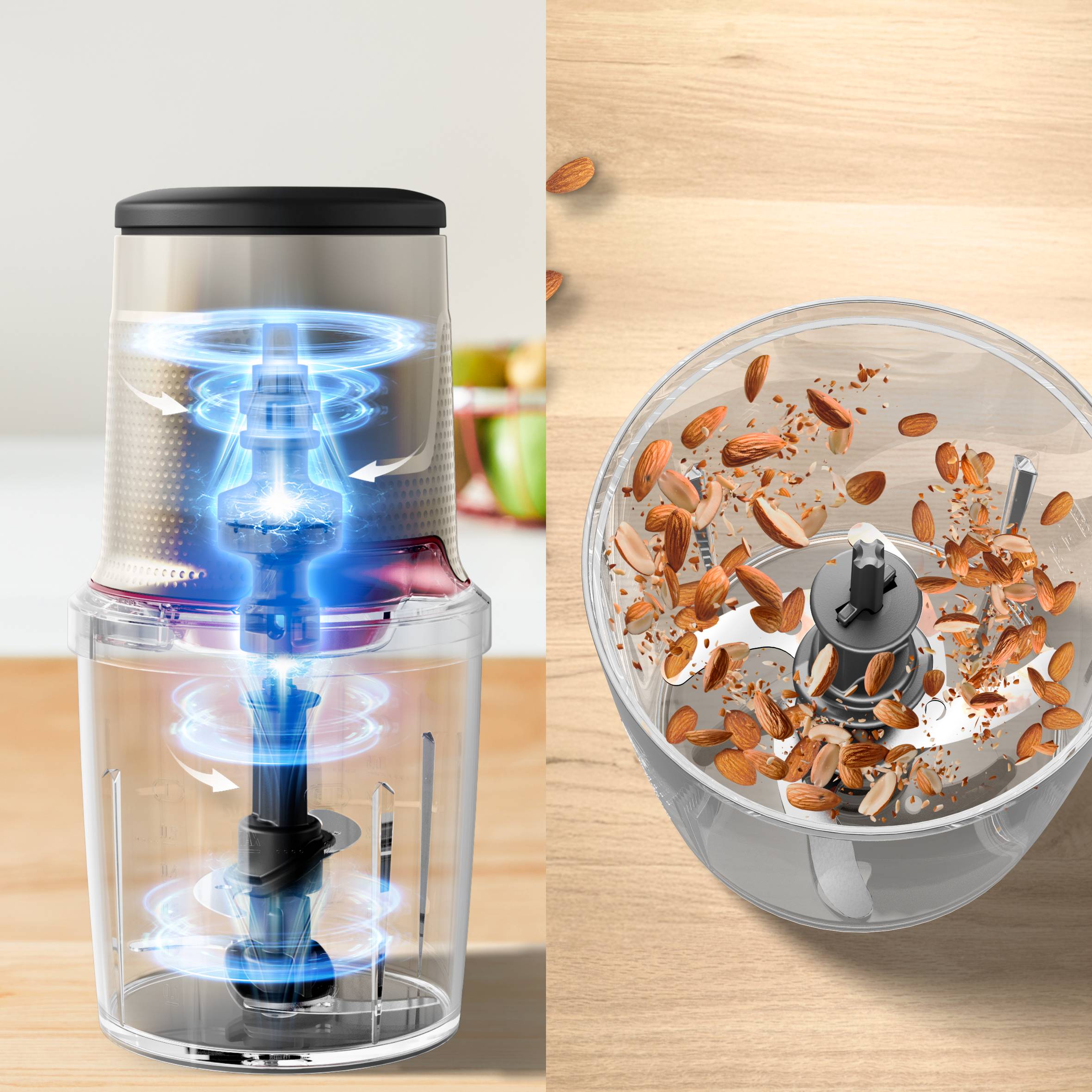 Rápida, simples e segura! A nossa picadora garante oferece resultados potentes com apenas um toque. Prepare uma grande variedade de receitas frescas e saudáveis, graças a três funções versáteis – misture guacamole e húmus, pique cebolas e ervas, pique carne... e muito mais. Além disso, desfrute de um design compacto que é fácil de guardar, bem como compatível com a máquina de lavar loiça.*