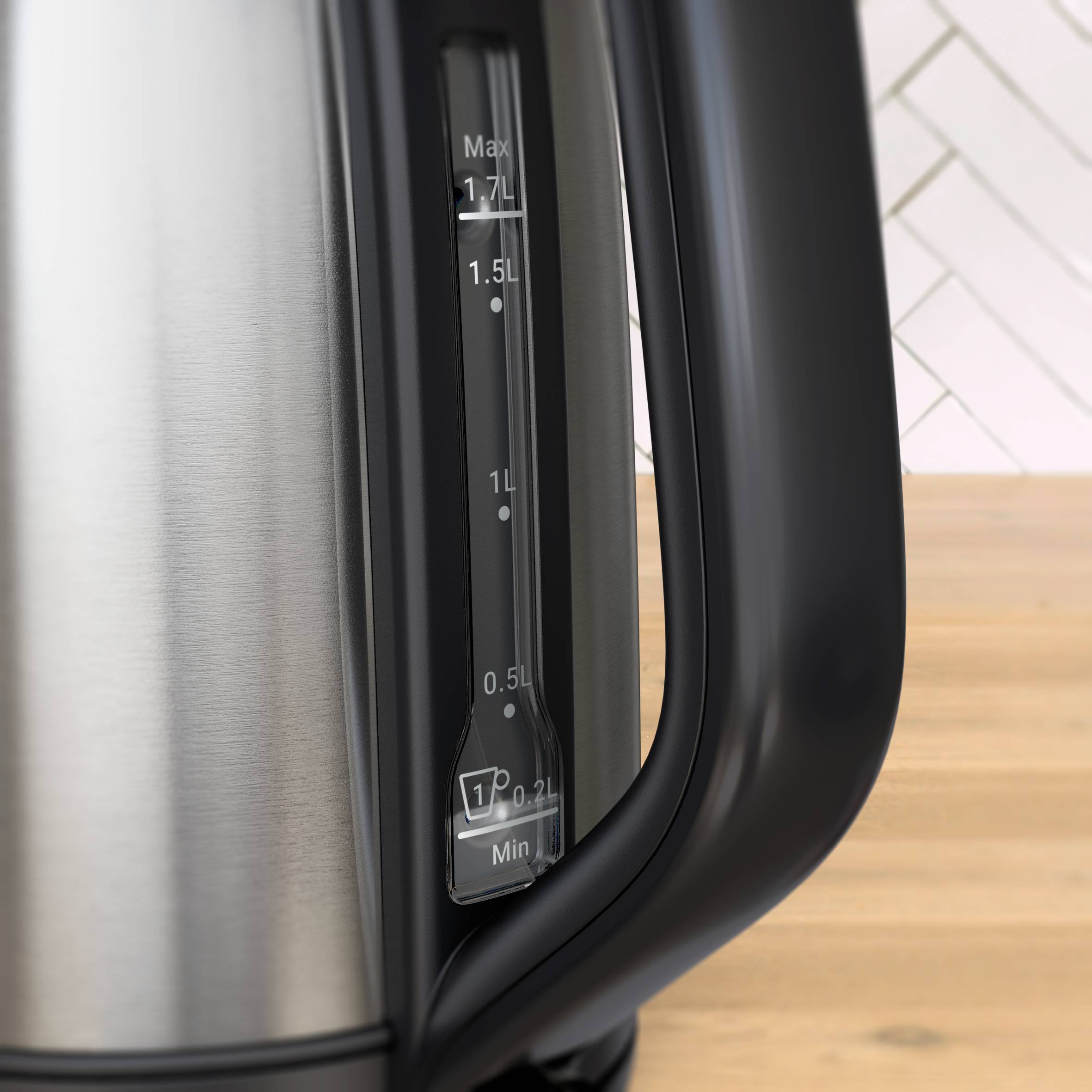 Basta aquecer água para apenas uma chávena de chá para poupar até 35% de energia e tempo* graças ao indicador de uma chávena (*vs duas chávenas) Abertura automática com uma só mão com o simples premir de um botão — para um enchimento e limpeza fáceis Jarro com contornos suaves e modernos que dão um toque elegante à sua cozinha Filtro anti-calcário amovível e fácil de lavar, para uma água mais limpa e um chá e café mais saborosos Jarro elétrico com uma capacidade generosa de 1,7 L, ideal para preparar até 7 chávenas — e perfeito para toda a sua família e amigos 2400 W de potência para um aquecimento rápido e bebidas quentes num instante — ideal para manhãs atarefadas Uma prática base rotativa a 360° para pegar e pousar facilmente o jarro de qualquer ângulo A embalagem de cartão dos nossos produtos é reciclável
