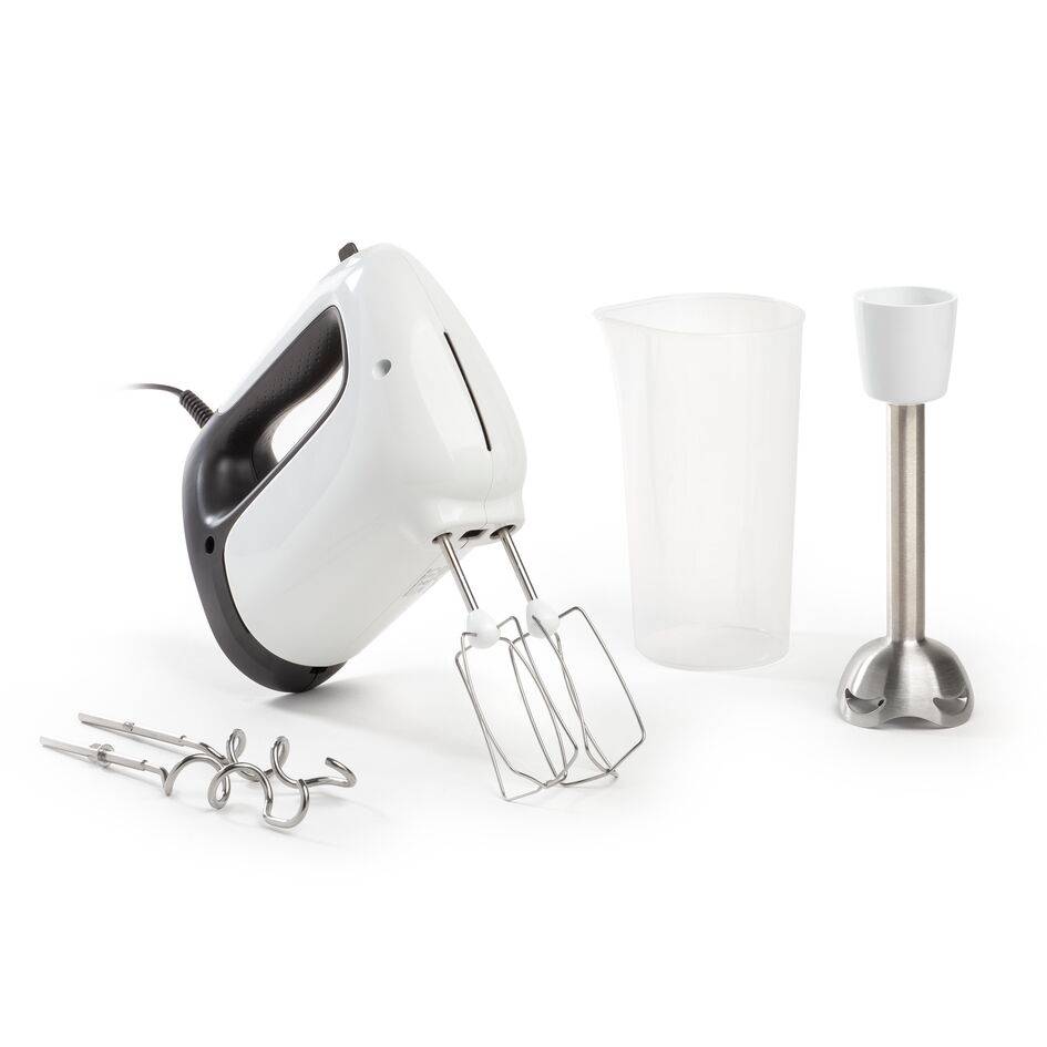 Batedeira de elevada performance com motor potente de 500W para cozinhar sem esforço. 5 velocidades disponível e função Turbo, para preparar qualquer tipo de receita de forma prática e tranquila. Varas de arame robustas e batedores em aço inoxidável para preparações espessas e leves. Design concebido para proporcionar total conveniencia, com uma pega ergonómica com textura e posição de repouso. Pé de varinha em aço inoxidável para confecionar sopas, purés e muito mais.