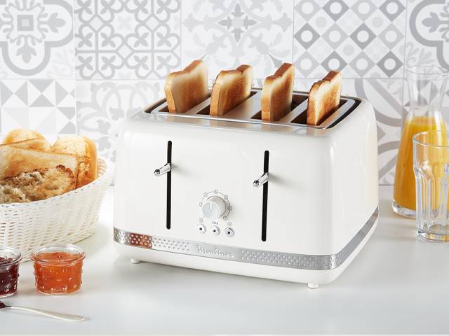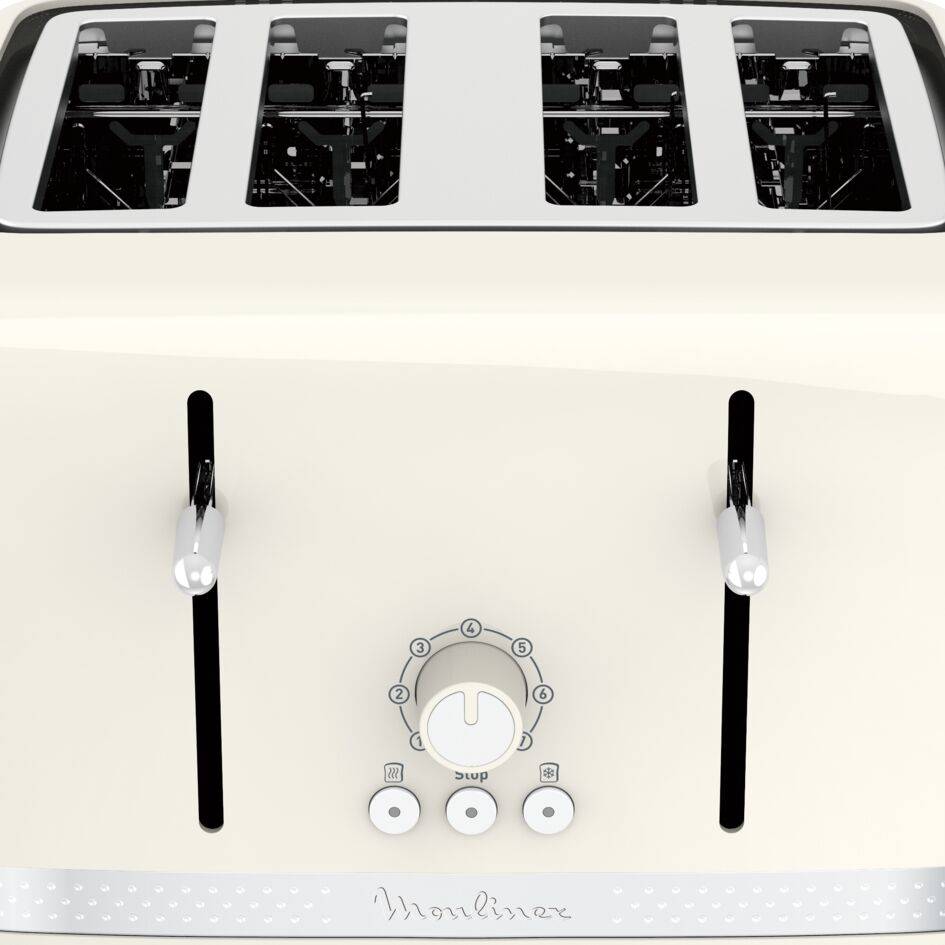 Torradeira de 4 fendas, com um design elegante e fresco. 7 Níveis de tostagem para desfrutar de resultados perfeitos. Fendas com largura ajustável para resultados no ponto ideal, tanto em fatias mais grossa, como finas. Botões fáceis de utilizar e versáteis: stop, descongelar e reaquecer. Remoção sem esforço das torradas, até das fatias mais pequenas, graças à elevação extra. Tabuleiro de recolha das migalhas, para proporcionar uma limpeza mais fácil e sem esforço.